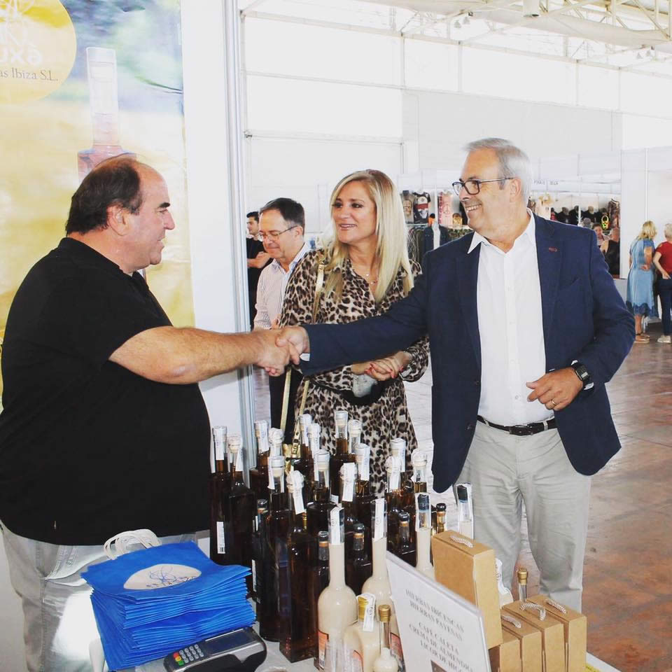Estos son los talleres de Hierbas payesas que hemos llevado a cabo nuestra casa. Pero tampoco hemos parado llevando nuestros productos por los mercados y mercadillos de la isla. Además de nuestros puestos habituales en el Mercadillo de las Dalias, en el Hippy Market de Punta Arabi y en el Mercado de Artesanía de Sant Josep, este mes hemos estado en la Feria de Artesanía del Recinto Ferial, donde tuvimos la oportunidad de invitar a una copita de hierbas al presidente del Consell d’Eivissa, Vicent Torres.